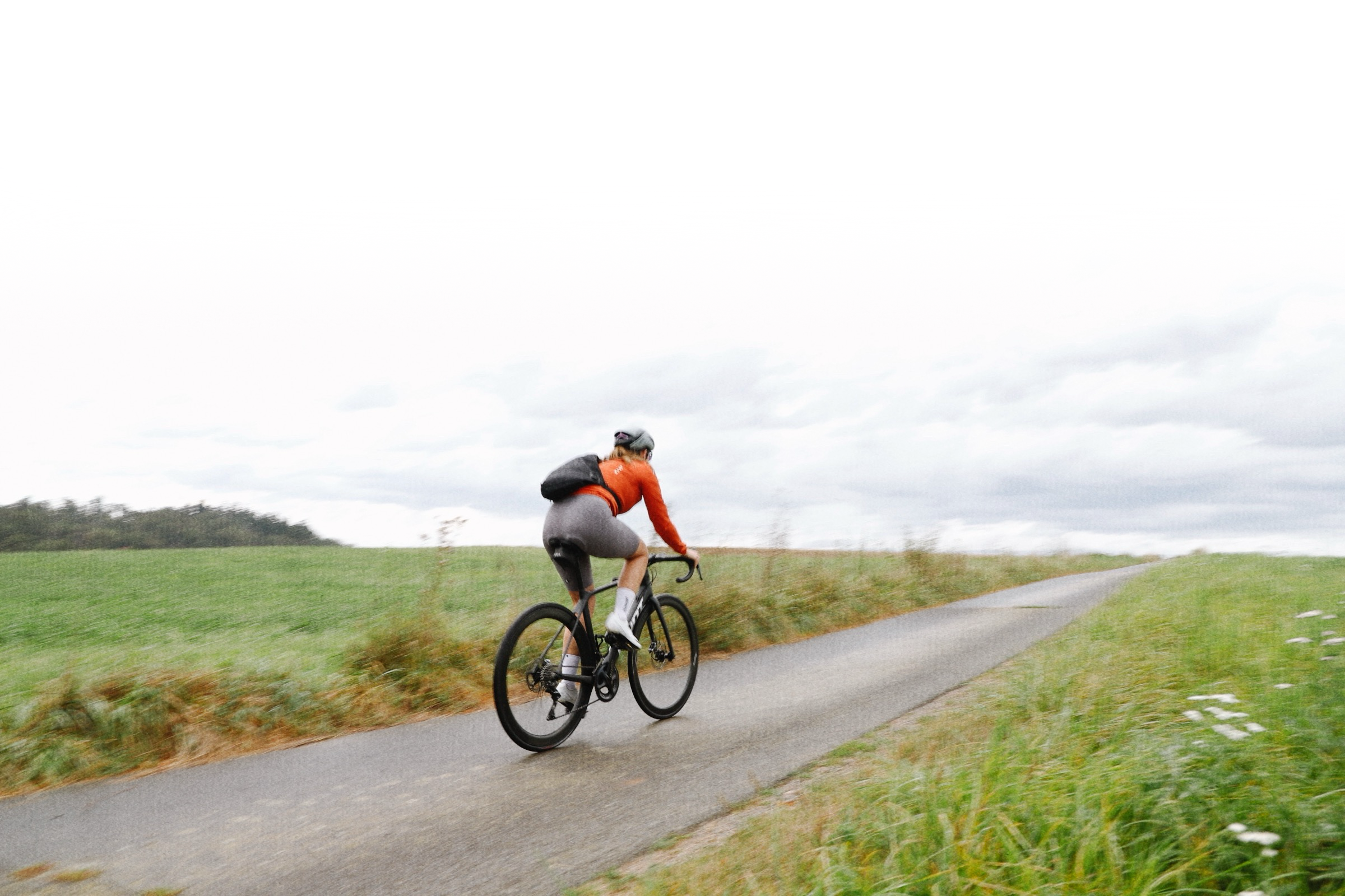 With your left hand, lock the buckle at the third point – for extra stability when cycling